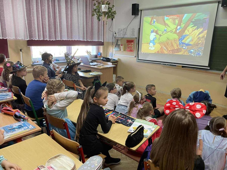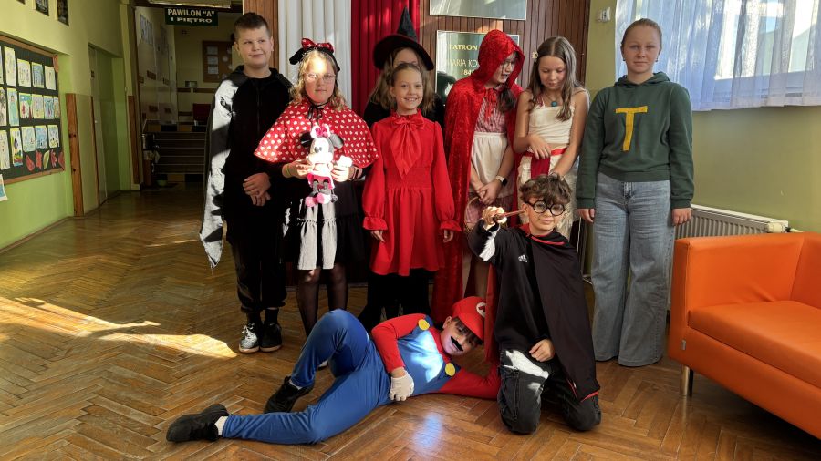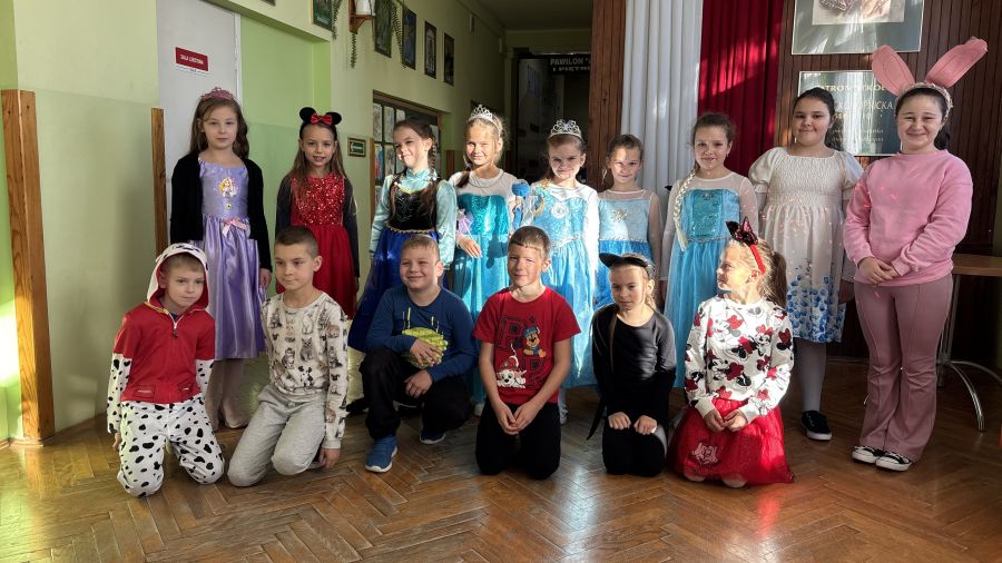 Już od samego rana na korytarzach szkolnych można było spotkać Minionki, Vaianę (nie jedną!), Księżniczki (również kilka:)), a także Robin Hooda, Rybaka i złotą rybkę, Myszkę Miki, Alicję w Krainie Czarów, Czerwone Kapturki i Złego Wilka oraz wiele, wiele innych. Pomysłowość naszych uczniów nie miała granic.