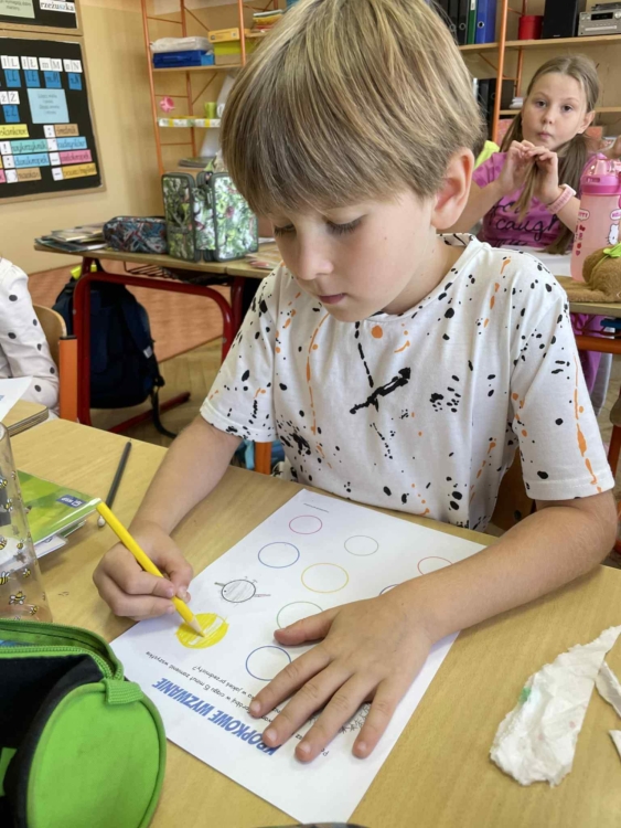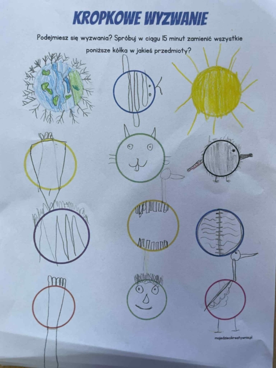 W naszej szkole w poniedziałek zaroiło się od kolorowych kropek. Każdy uczeń miał na sobie przynajmniej kilka kropek. Każdy dostał także kropkowe wyzwanie, które miało rozwijać wyobraźnię i kreatywność, a także dodawać odwagi do realizacji swoich talentów.