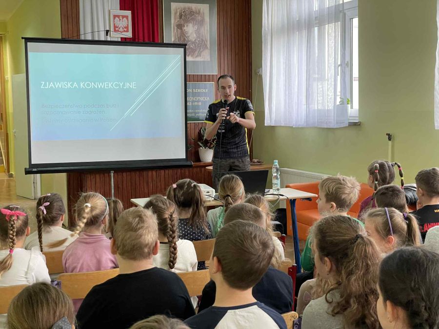 W dniu 12.11.2025 r. w Zespole Szkolno-Przedszkolnym w Kwiatonowicach odbyły się zajęcia prowadzone przez Pana Marka Sowę, autora bloga "Pogoda okiem Marka". Spotkanie dotyczyło kształtowania się pogody w regionie oraz zasad postępowania podczas burz. Uczniowie dowiedzieli się jakie są rodzaje systemów ostrzegania meteorologicznego w Polsce. Poznali również miejsca i zachowania, które stwarzają niebezpieczeństwo podczas burzy. Młodzież poznała również kilka ciekawostek dotyczących zjawisk atmosferycznych.