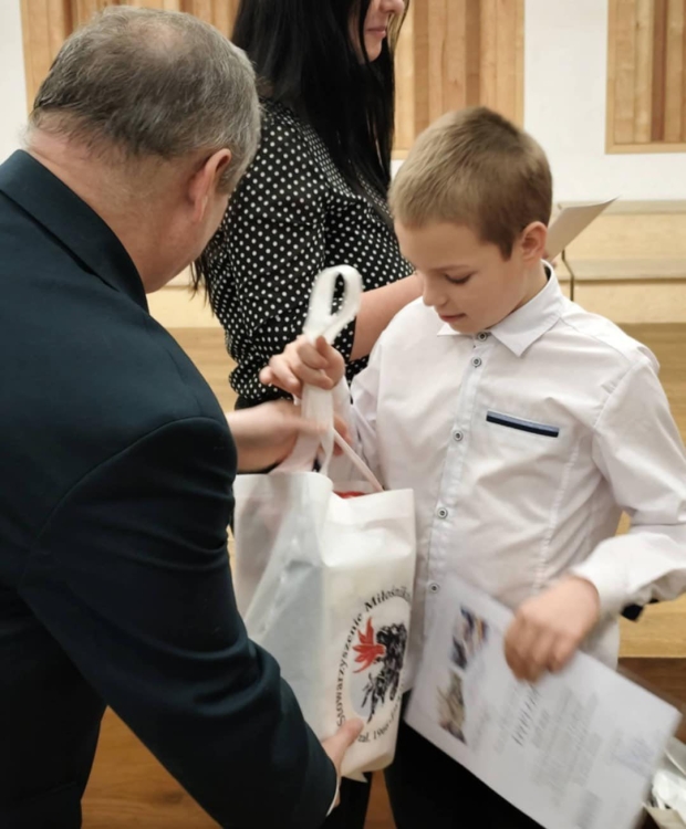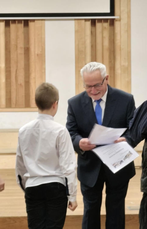 W dniu 21.11.2025 r. w auli Zespołu Państwowych Szkół Muzycznych w Gorlicach odbył się finał konkursu, który co roku organizowany jest przez Stowarzyszenie Miłośników Ziemi Gorlickiej. Temat tegorocznej edycji brzmiał: „Jakie tradycje ludowe kultywowane są do dziś na Ziemi Gorlickiej?” Nasza szkoła reprezentowana była przez ucznia klasy IV – Kacpra Mruka. Przygotował on pracę pisemną, która została wysłana na międzyszkolny etap konkursu. Kacper w niezwykle dokładny i staranny sposób opisał zwyczaje związane z dożynkami i zdobył wyróżnienie. Gratulujemy!